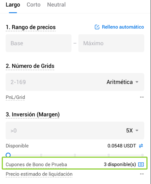 - Los cupones de bono de prueba para Grid de Futuros no se pueden utilizar en bots de grid de futuros que tengan establecido un precio de activación.