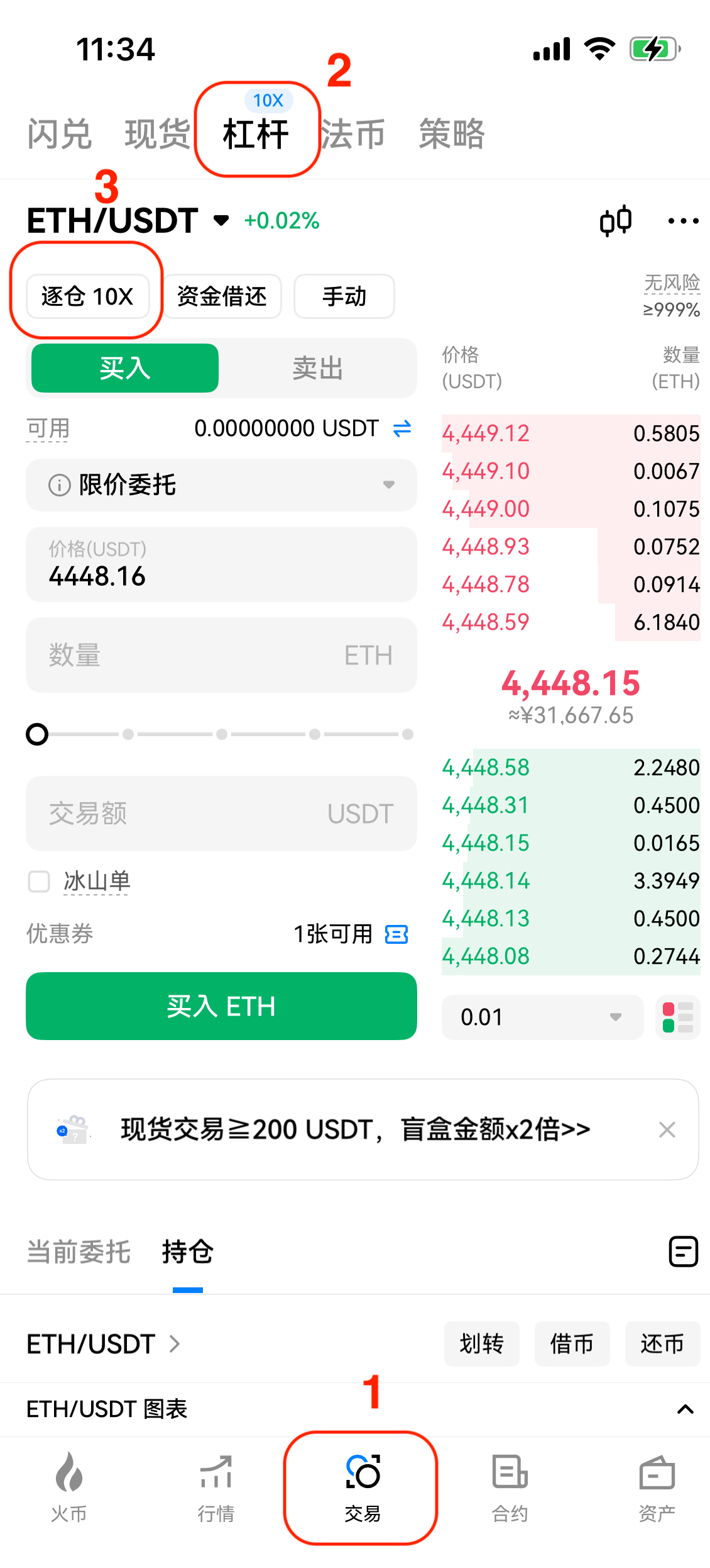 在火币HTX主页点击【交易】——【杠杆交易】,选择【全仓】或【逐仓】