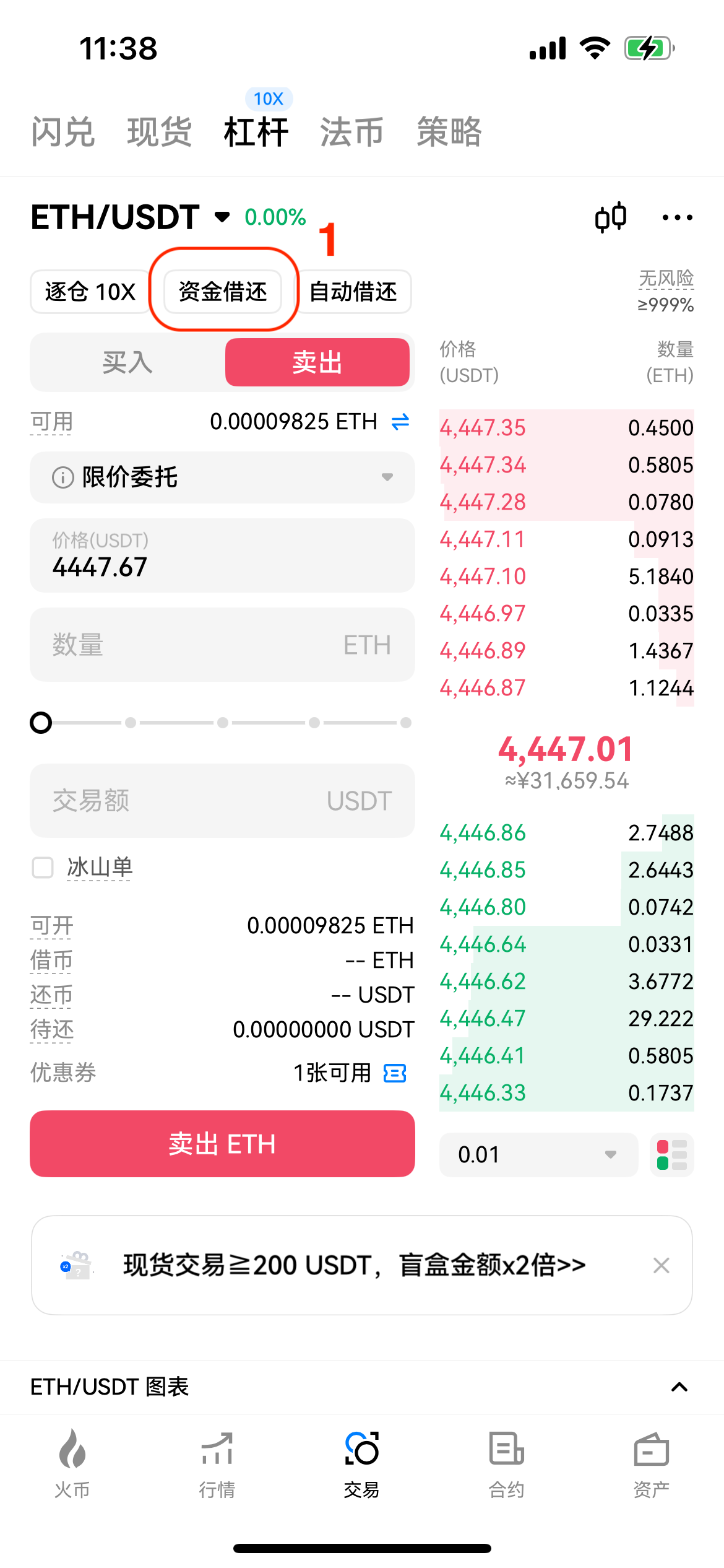 第二步:选择【卖出】,输入【数量和价格】点击【卖出】,一旦订单成交,即可完成 USDT 欠款的归还。